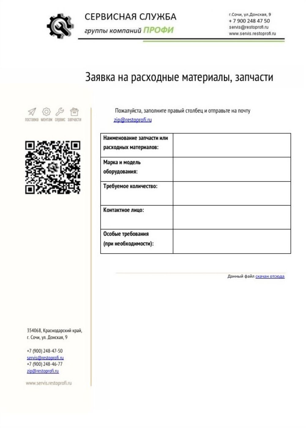 Подать заявку на запчасти или расходные материалы. Как заказать?